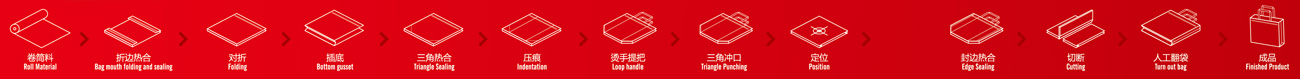 2. Process flow: Roll material folding, threading rope, hot sealing, folding, inserting edge positioning - punching - hot sealing, cutting and collecting finished products.